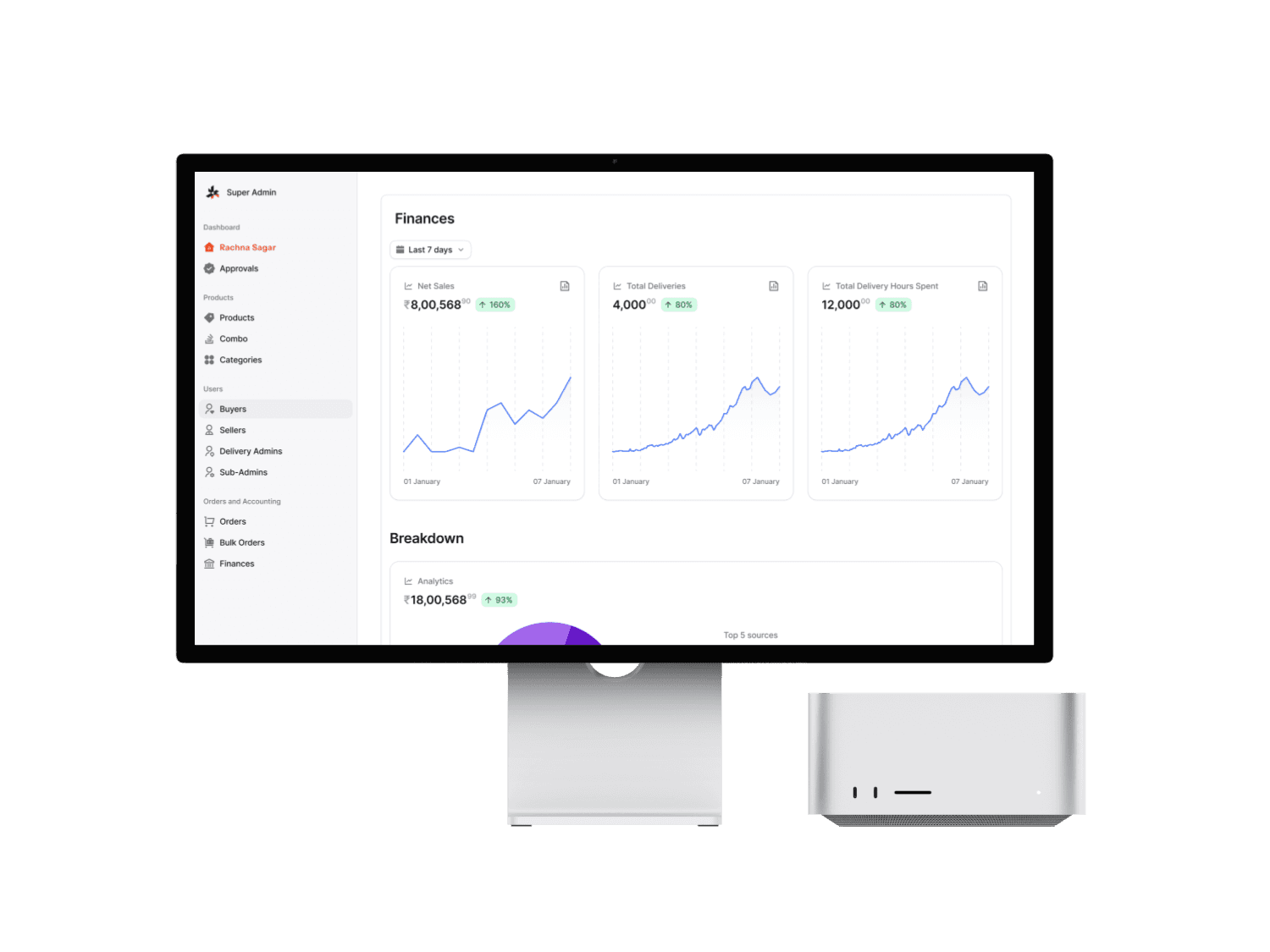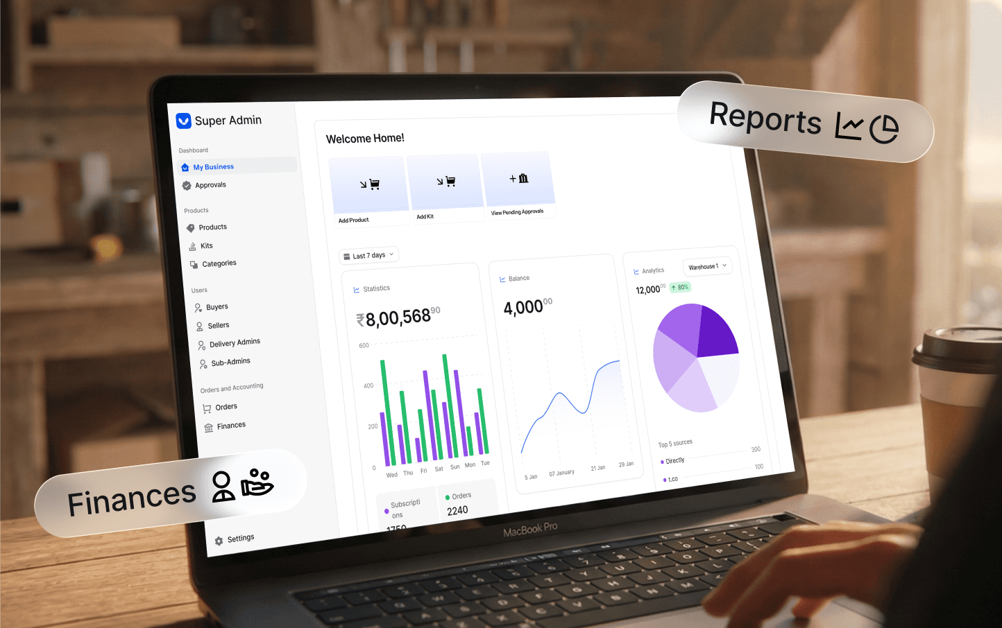 Provide admins and sellers with detailed insights into sales performance and trends.