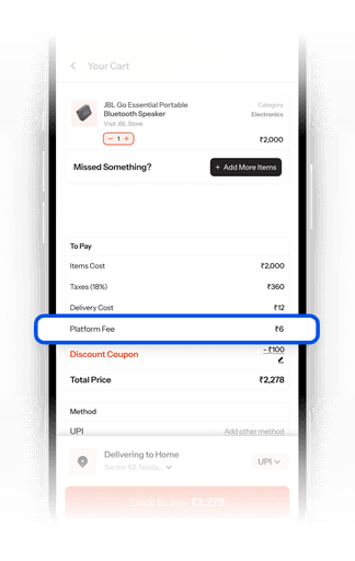 Example: 100 transactions in a month = 100 * 6 (Platform Fee) = ₹600 in a month
