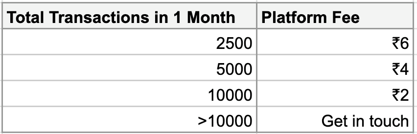 Eg: 100 transactions in a month = 100 * 6 (Platform Fee) = ₹600 in a month